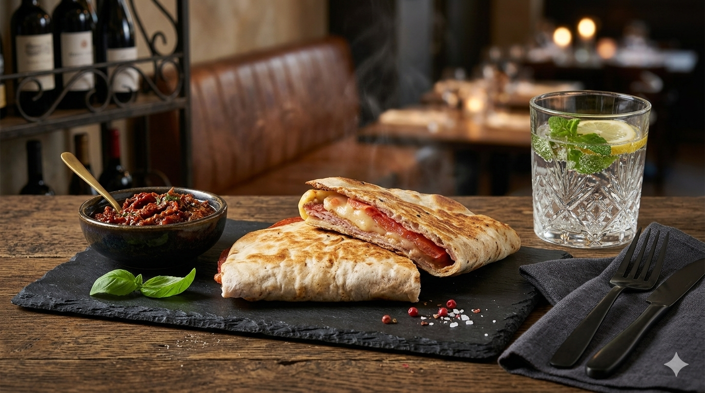 Быстрый и сытный перекус с мясным фаршем, расплавленным сыром и овощами в тортилье с авторским йогуртово-горчичным соусом.